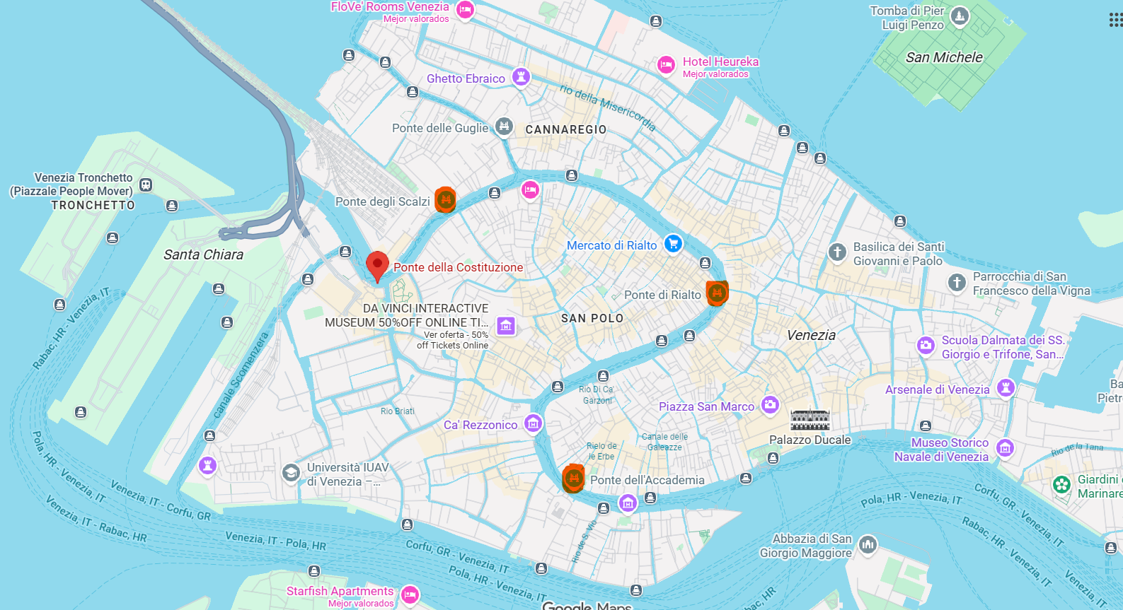 Top attractions: Jewish Ghetto, Ponte della Costituzione, Ponte degli Scalzi, Venice Saint Lucia Station, Strada Nova, Calle Varisco, Madonna dell’Orto Church, Galleria Giorgio Franchetti alla Ca’ d’Oro, Ca’ da Mosto, Ponte delle Guglie